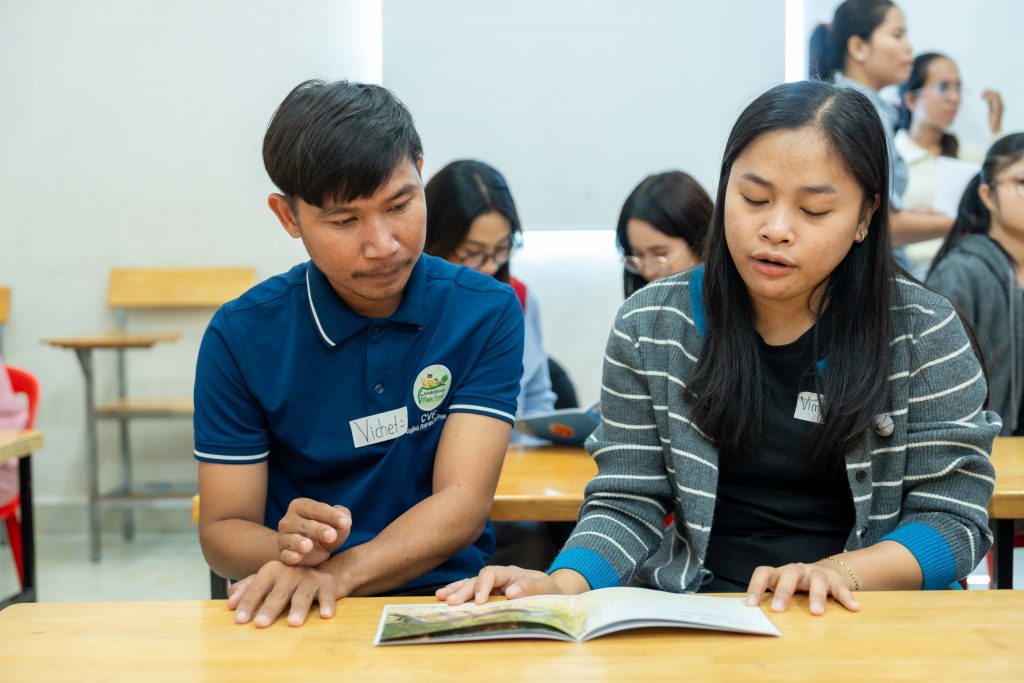 Jenny kindly offered five places for the teachers of our English Language Program in her series of workshops. Our Teacher SreyNoch said of the workshop: “It helps me to pronounce the 26 letters of the English alphabet and words correctly. The most interesting parts are the magnetic boards, the storyboards and the leveled books.”
