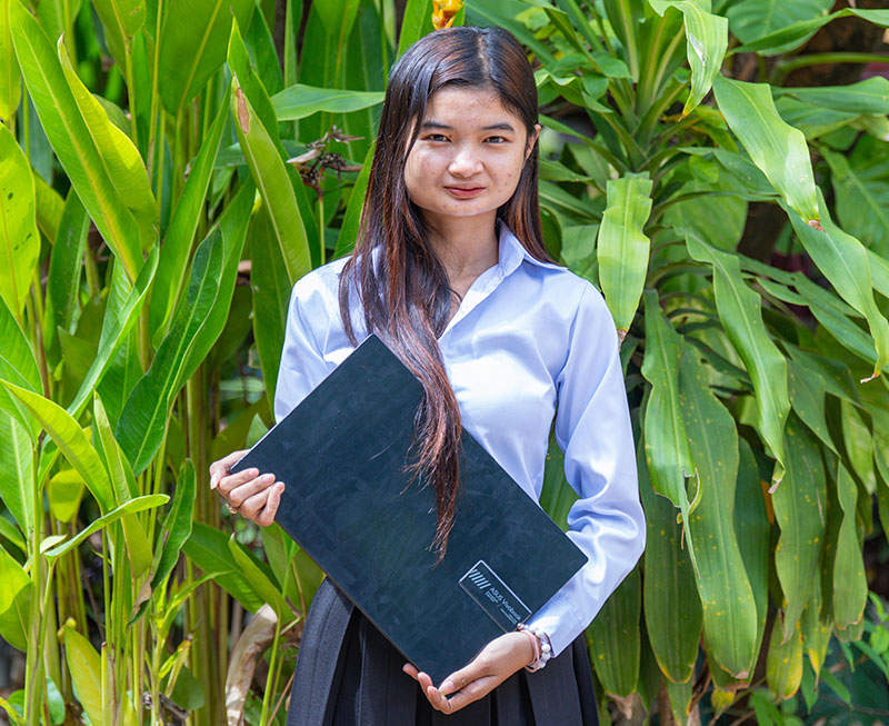 Born on 27 September 2006 in Prey Touch Village, Lisa joined our scholarship program in November 2025 after graduating from Sangke High School. Lisa is an only child and was raised by her grandmother. Her mother moved away to find work and regularly sends money to support them, as Lisa’s father passed away when she was little. “My biggest dream is to graduate from university and find a good job in order to ease my mothers burden – but also to make her proud.” Lisa studies Accounting at Build Bright University. She lives in our dormitory, providing her with housing and a community.